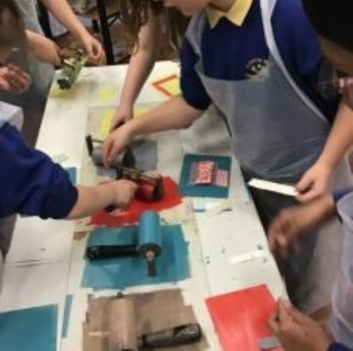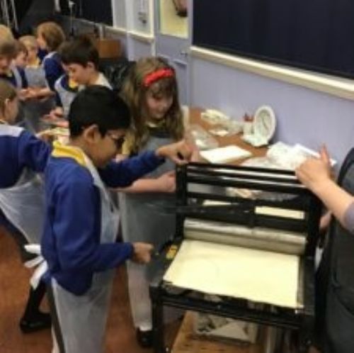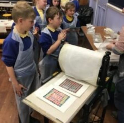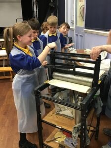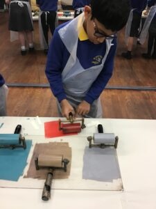 Year 4 had a fantastic time using different textures and inks to create Roman mosaic inspired mono prints. They used different shapes to create the small mosaic tiles and positioned them in beautiful patterns before putting them through the printing press. The results look fantastic!