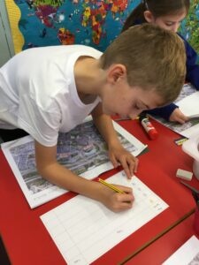 In preparation for making comparisons between Blaydon and Edinburgh, Year 3 have been using their prior knowledge (Y1 – Blaydon topic) to carry out a range of map-related tasks. First, they mapped out the route that they took on a previous fieldwork trip before assigning a range of landmarks to their correct location on a birds-eye view map of Blaydon. They then used a selection of different maps to carry out a data handling task where they were required to identify Blaydon’s most popular feature through a symbol identification activity i.e. pound sign – bank; shopping trolley – supermarket; knife and fork – restaurant etc.