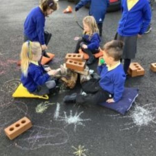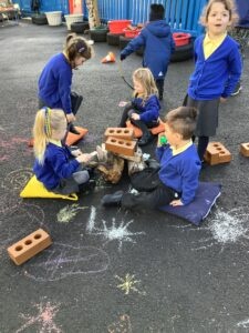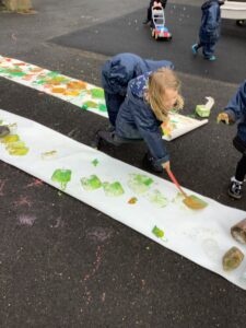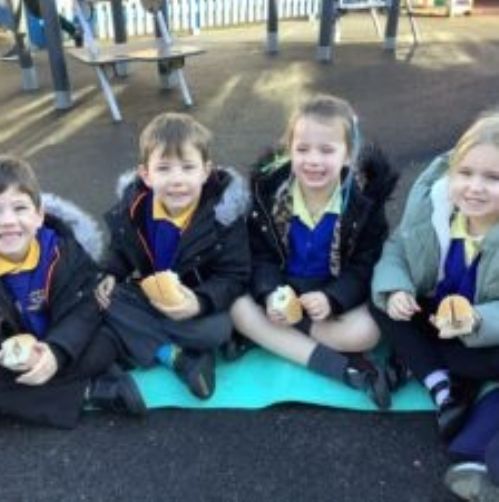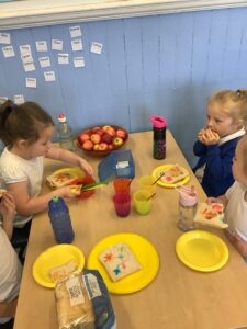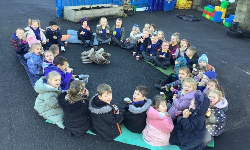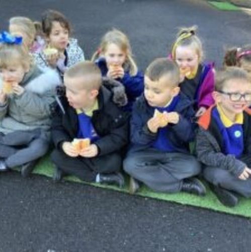To end the week we had a bonfire party outside with nursery. We sat around the bonfire and listened to firework sounds while we ate hotdogs, breadstick sparklers and drank hot chocolate for our snack.