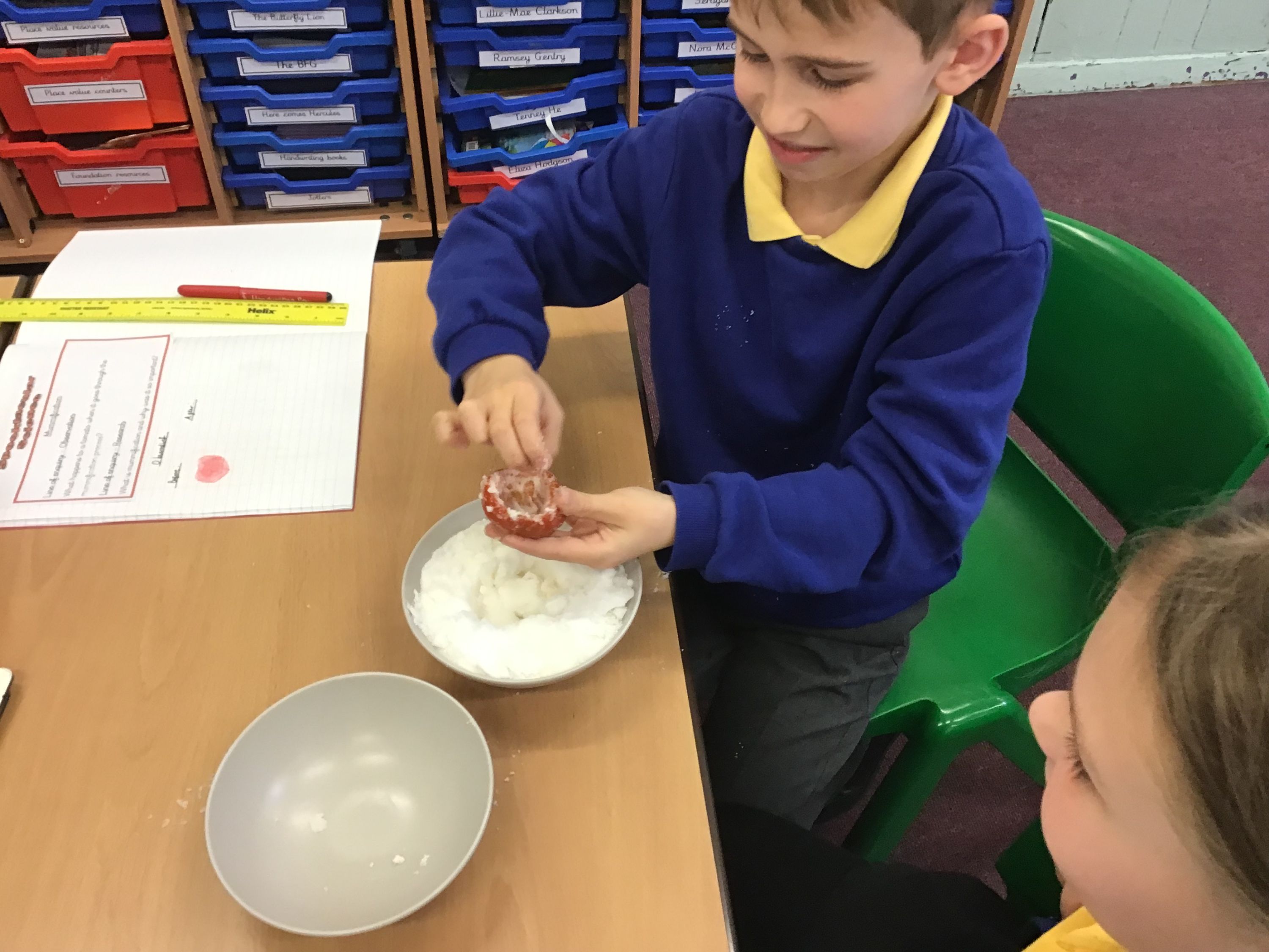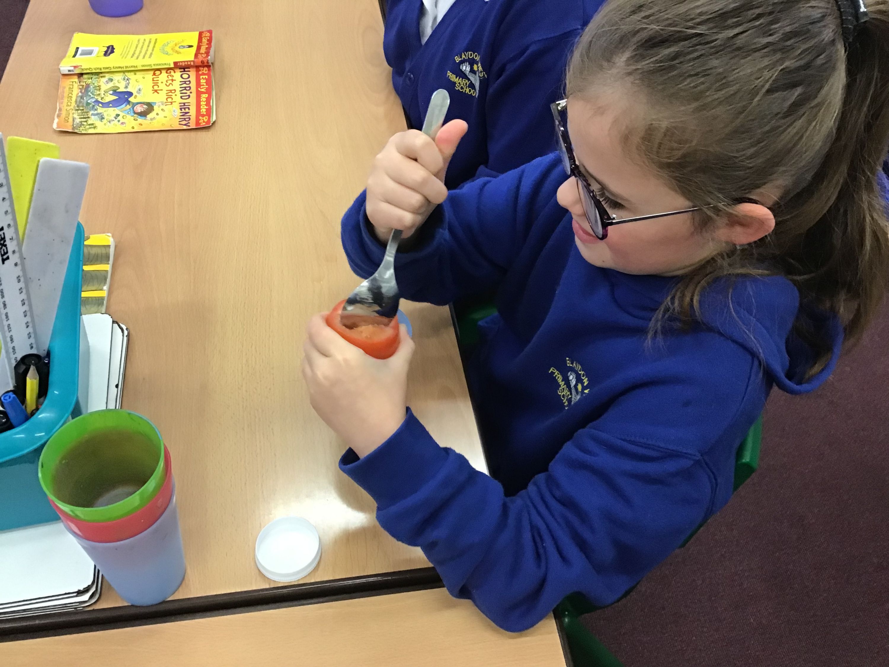 They set up an experiment in which they mummified tomatoes in a similar way to how the Ancient Egyptians mummified people thousands of years ago. They even scooped out the insides like the organs would of been scooped out! We then observed the changes after 4 days to see what happened to the tomatoes.